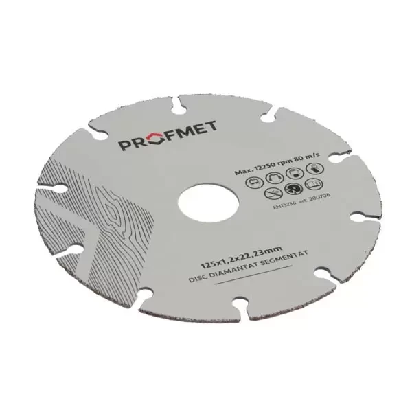 Disc diamantat segmentat pentru lemn este destinat instalării în polizorul unghiular. Discul segmentat are fante pe toată circumferința, asigurând răcirea discului, ceea ce duce la o încălzire mai mică și o durată de viață mai lungă.