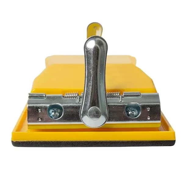 Bloc de șlefuit din plastic cu cleme pentru fixarea hârtiei de șlefuit și cu o bază de 4 mm grosime este un instrument universal pentru șlefuirea manuală a diferitelor suprafețe. Datorită clemei, hârtia de șlefuit este fixată ferm pe bloc, permițând o prelucrare precisă și de calitate fără riscul de alunecare a hârtiei. Baza de 4 mm grosime asigură suficientă rigiditate pentru o șlefuire eficientă, păstrând în același timp controlul și sensibilitatea la suprafața prelucrată. Instrumentul este fabricat din plastic de înaltă rezistență, ceea ce garantează durabilitatea și rezistența la uzură.