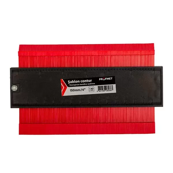 Șablon riglă contur cu lungimea de 150 mm (aproximativ 6 inch), fabricat din plastic, este un instrument versatil, destinat reproducerii exacte și transferului diferitelor contururi și forme pe suprafața de lucru. Este deosebit de util în construcții, lucrări de tâmplărie, craft și modelism, unde este necesară o copie precisă a conturului unei piese pentru prelucrare ulterioară sau verificarea conformității dimensiunilor.