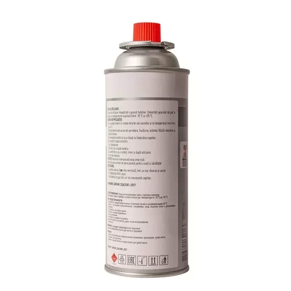 Butelie cu gaz, butan 450 ml - este o sursă de combustibil universală și fiabilă, destinată utilizării cu diverse dispozitive pe gaz, cum ar fi arzătoare, lămpi de lipit, reșouri și altele. Butelia este umplută cu butan pur, care asigură o ardere stabilă și eficientă. Compactă și ușor de utilizat, această butelie cu gaz va deveni un ajutor indispensabil în diverse situații, fie că este vorba de gătit, reparații sau activități în aer liber.