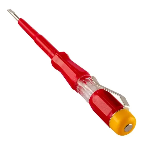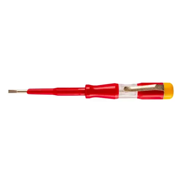 Indicator de tensiune cu mâner termorezistent este esențial pentru verificarea prezenței tensiunii în circuitele electrice în intervalul de 100 până la 500 de volți. Echipat cu un șliț plat (SL), instrumentul vine cu un mâner termorezistent, ideal pentru utilizarea în medii cu temperaturi ridicate, prevenind supraîncălzirea în mâna utilizatorului.