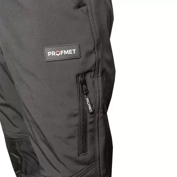 Pantaloni PROFMET - sunt pantaloni funcționali și confortabili, concepuți pentru protecția împotriva condițiilor meteorologice nefavorabile. Sunt realizați dintr-o combinație de poliester și spandex (softshell), asigurând rezistență, flexibilitate și confort la purtare. Membrana TPU 300gsm oferă impermeabilitate și protecție împotriva vântului, păstrând în același timp proprietățile respirabile. Culoarea neagră face pantalonii practici și versatili pentru diferite situații de lucru și de zi cu zi.