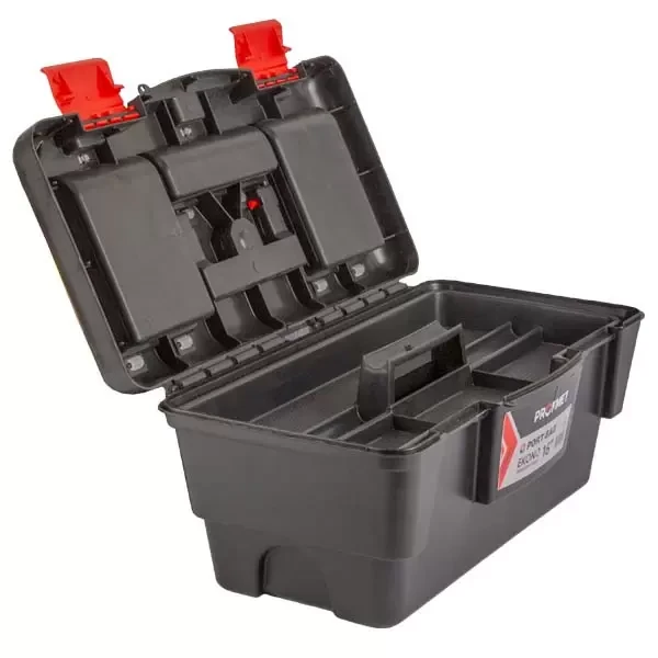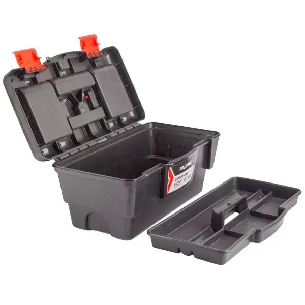 Cutia pentru unelte este formată din compartimente, capac, mâner pentru transport și încuietoare din plastic. Carcasa este robustă și stabilă, protejând uneltele în timpul transportului și de riscurile externe. Este utilizată pentru depozitarea și păstrarea uneltelor de mână și a altor piese.