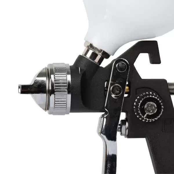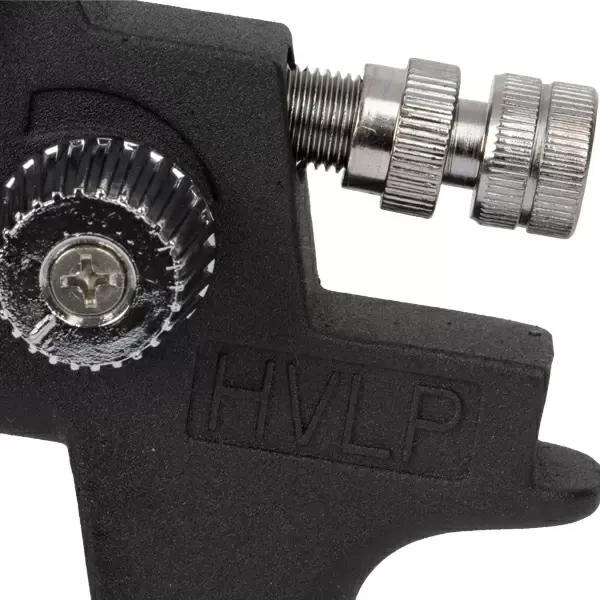 Sistem de pulverizare HVLP (High Volume, Low Pressure) la presiune scăzută (0,7 bar la ieșirea din duză), atunci când raportul de transfer al vopselei pe suprafața pulverizată (eficiență) atinge 70%. Restul de ceață de vopsea se pierde.