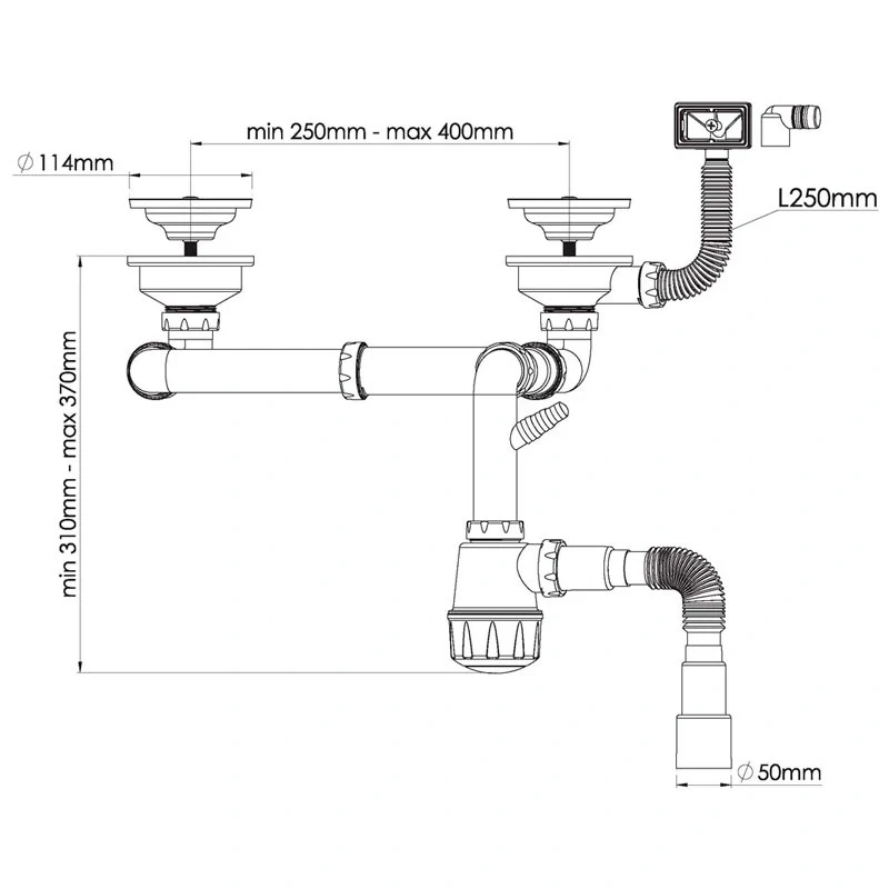 Sifon dublu cu scurgere+iesire masina spalat